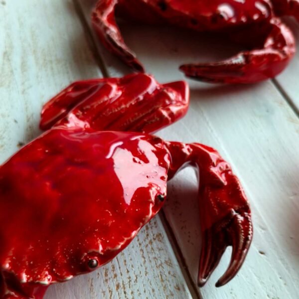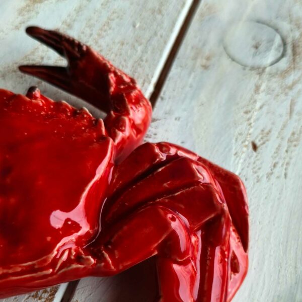Feito à mão por artesãos portugueses, este artigo não é apenas uma peça de decoração, mas sim um pedaço da rica herança cerâmica de Portugal. A sua intensa cor vermelha brilhante contrasta perfeitamente com qualquer fundo, evocando imediatamente a vivacidade do mar.