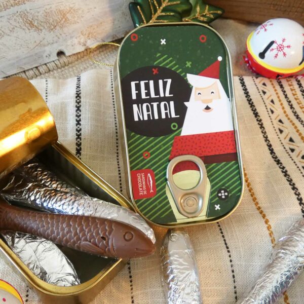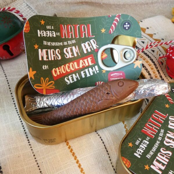 Surpreende este Natal com as nossas irresistíveis sardinhas de chocolate! Inspiradas na tradição portuguesa e embrulhadas em ilustrações natalícias engraçadas e coloridas, estas sardinhas transformam o símbolo mais típico de Portugal num presente doce e inesquecível.